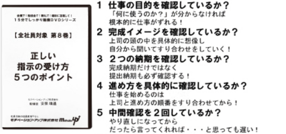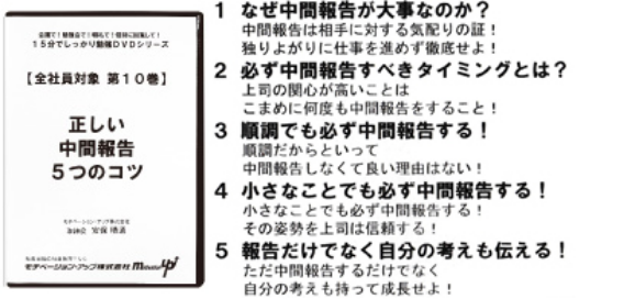 入社後~半年の間は、10段階の業務達成表を用い、2~4週おきにチェックし基本業務を習得していきます。